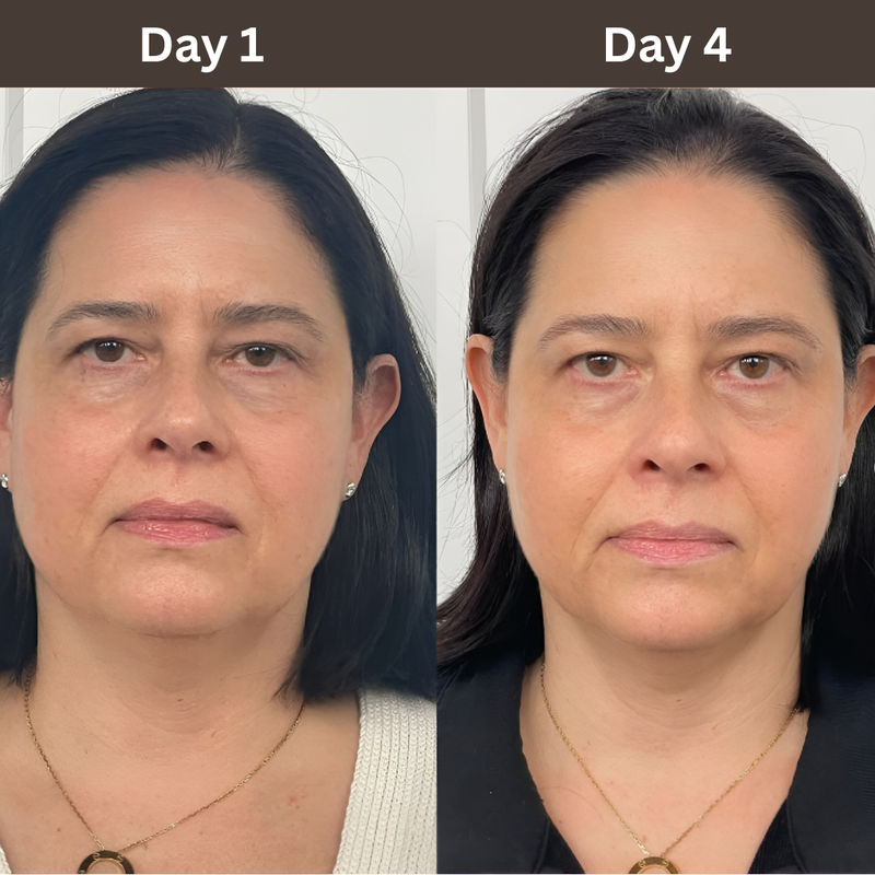 Many users notice reduced puffiness and a lighter facial feel within the first week. Visible contour support typically improves with consistent daily use over several weeks.